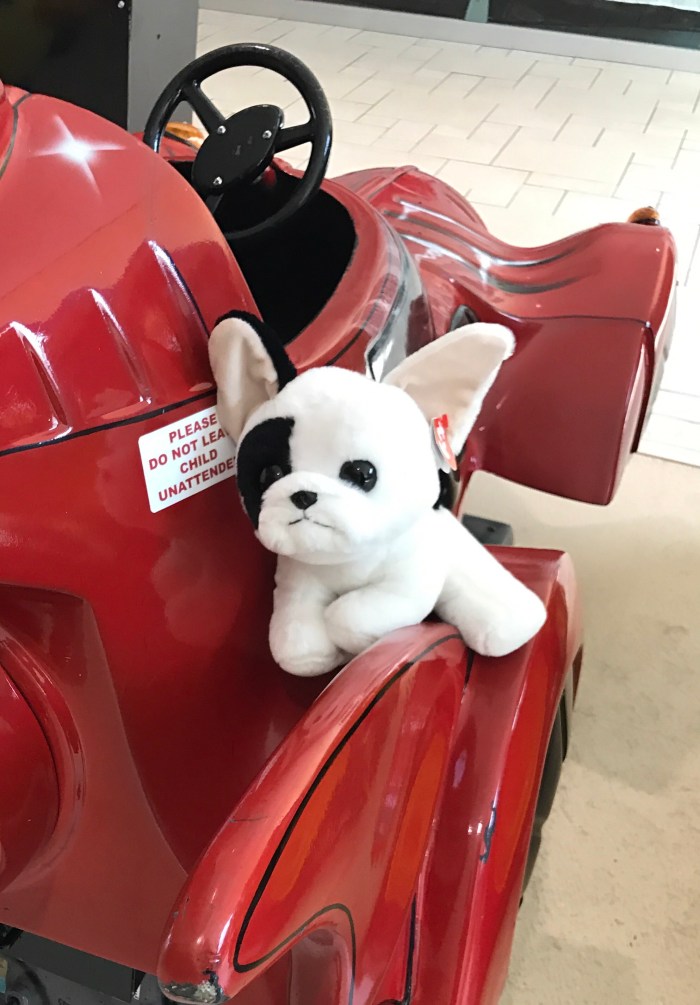 Heath sent me a text at work to let me know that Pandi was missing at the mall. While we have five Pandi understudies ready to step up and assume the great responsibility of being Olivia’s number one Pandi, if ever the need should arise, I wasn’t ready to say goodbye to the OG. On my lunch break I frantically drove to the mall across town (Cruella de Ville style, but safer) to find her. When I got their I picked up a French bulldog stuffed toy on the off chance Pandi had been taken and I needed to initiate a trade in order to secure her release.